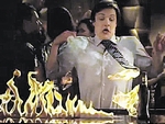 A Ambev enviou uma nota à Página 2 para esclarecer o comercial de TV da Skol Beats Extreme, que mostra chamas num balcão e até queimando a gravata de um cliente (foto), além de sputniks acesos dentro de uma boate.